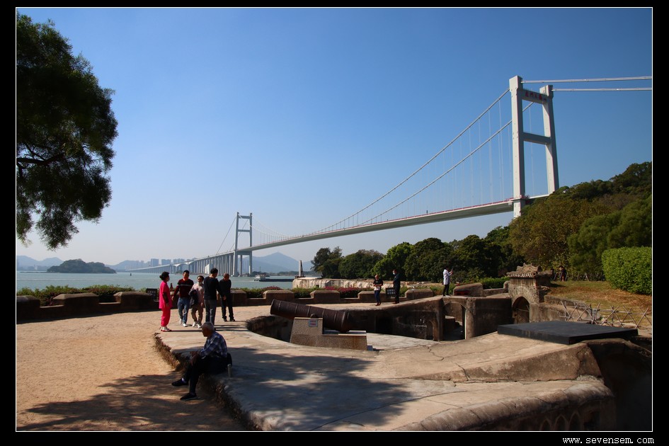 这里是鸦片战争古战场的的遗址,虎门大桥就在旁边而过,珠江出海口就在前面。