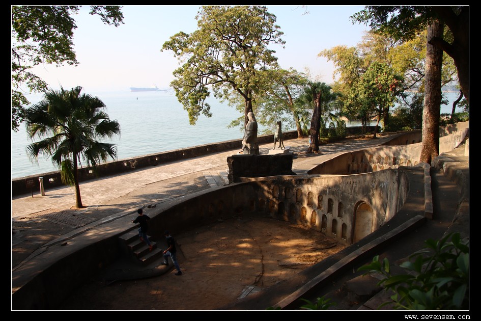 参观完海战博物馆,就可以沿着海堤观看威远炮台古战场。