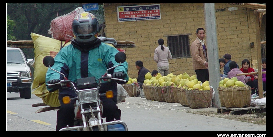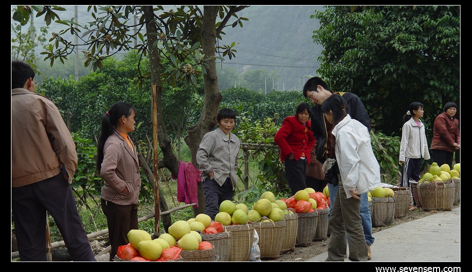 途经瑶族同胞居住地,到处是柚子树。路边摆满了摊档,柚子香气逼人,怎能不下车吃个够呢。