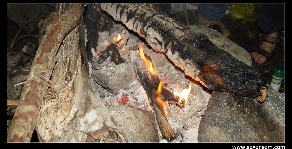 18:00,生炉点柴,炊事煮食。篝火边聊天