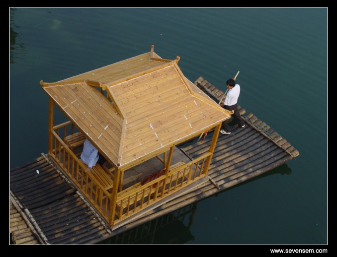遇龙河漂流是指遇龙桥到工农桥的水程,有28到堰坝。小小竹排水中游,两岸风景看不够。遇龙河真的很美。上游那段我们十几个竹筏,很是热闹得很。