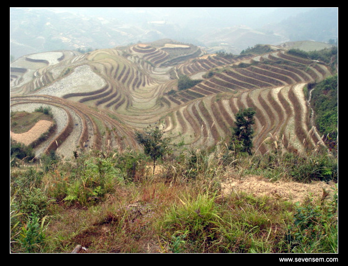 选择骑自行车的方式来到了遇龙河漂流的起点,遇龙桥。大概需要一个小时的时间,沿途层层阡陌的水稻田与农人耕田的景致,为典型农家生活的写照。
