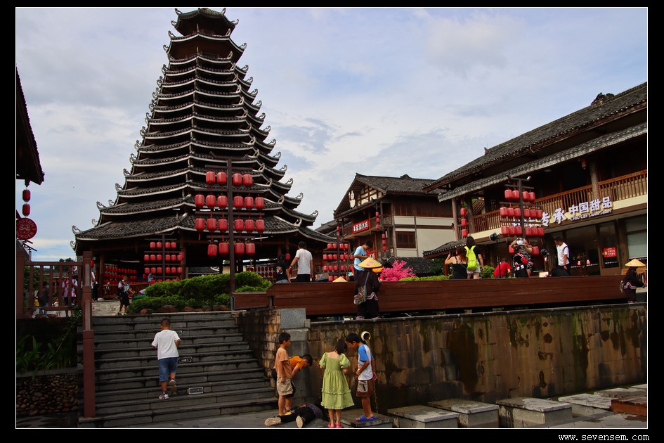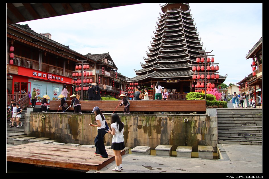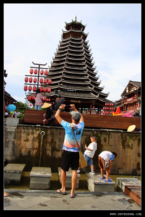 镇中15层高的鼓楼最为吸睛,没用一根钉子,全靠木头卡扣搭建,不得不佩服侗族人民的智慧,这堪称“侗族乐高”!
