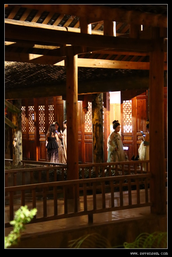 这里的建筑都是木质结构,飞檐斗拱、雕花门窗,精致又古朴。