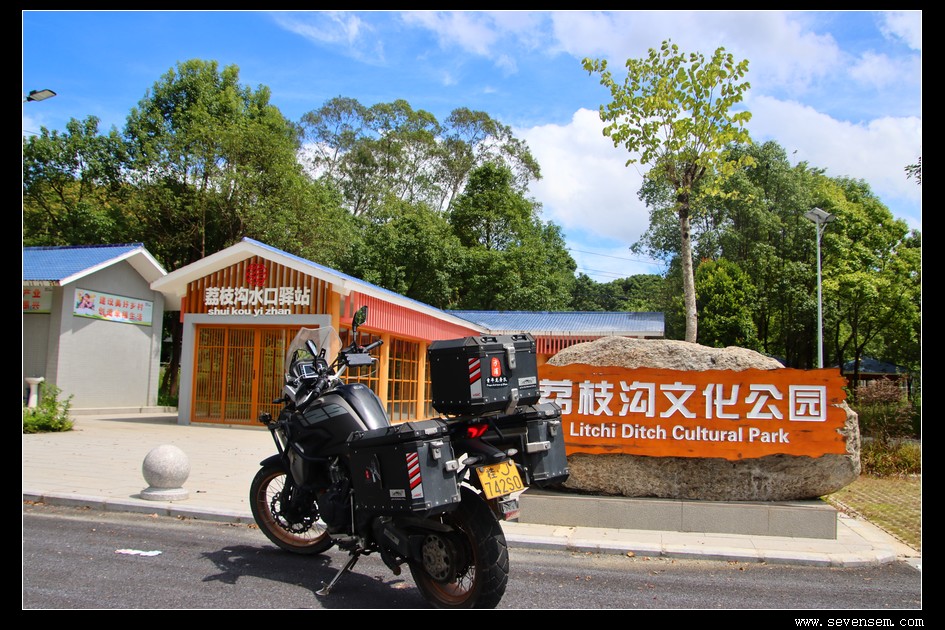 进入山区后,真正的摩旅盛宴才刚刚开始。山路蜿蜒曲折,犹如一条丝带缠绕在山间。从正果老街进来水美村还要15公里,途径荔枝沟水口驿站。