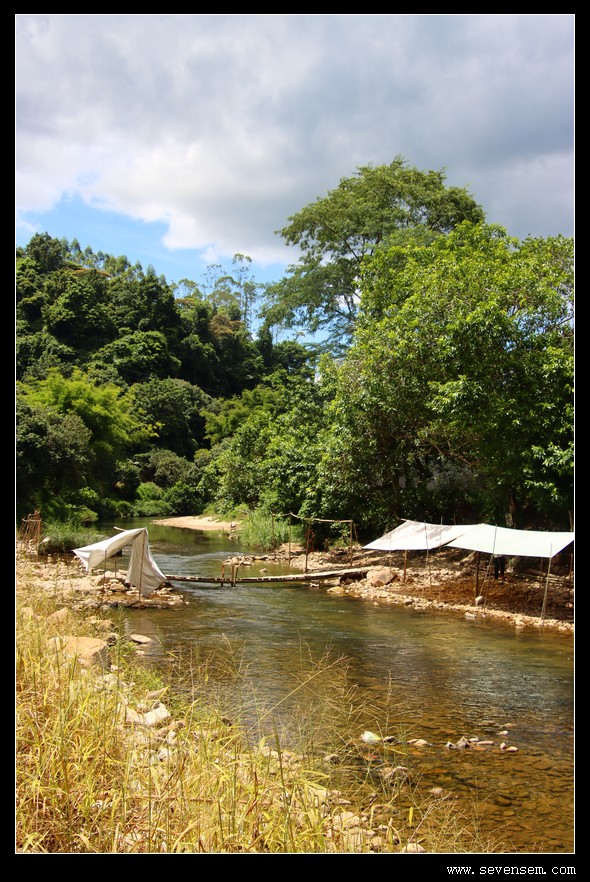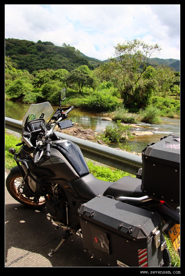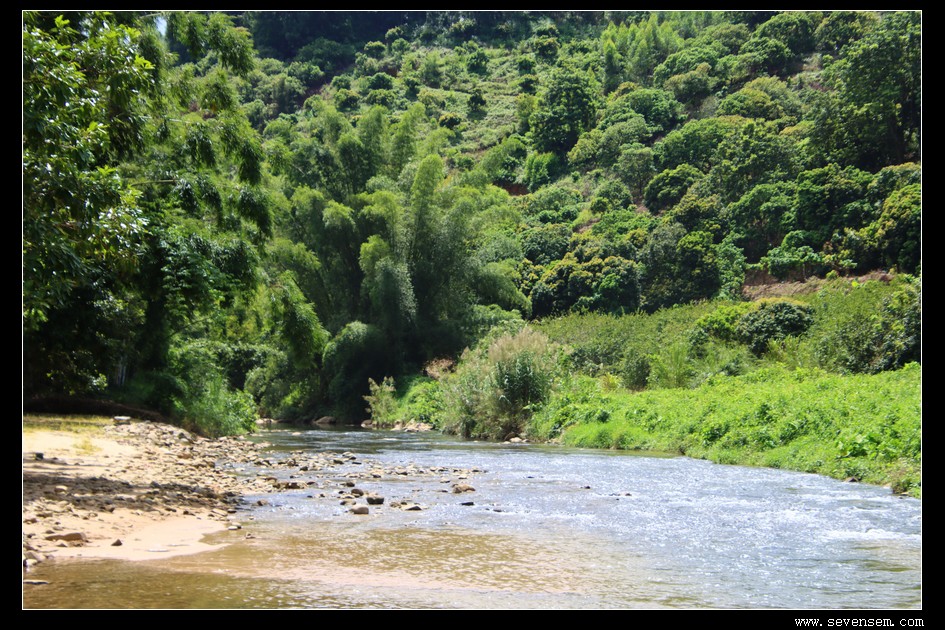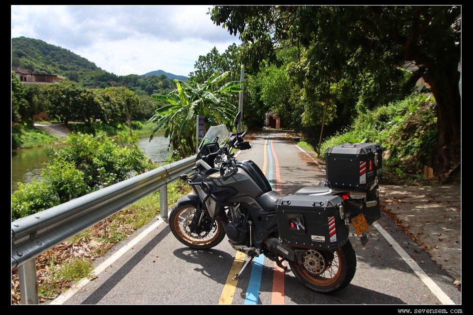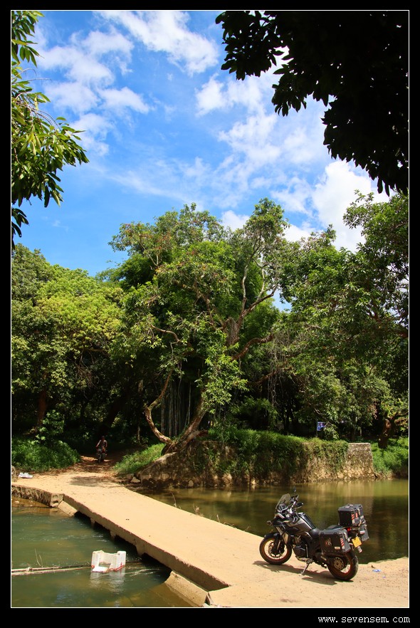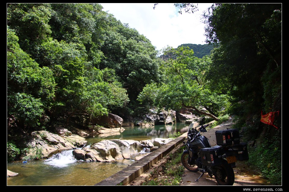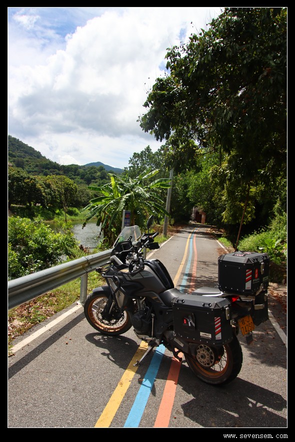 从水美村出发,沿着河边往上游走,大概10公里作用终于来到道路的尽头,摩托车都开不过去了。前面三次来彩虹到去到上山就结束了,这次连山上也修好了沥青路,彩虹道铺到尽头,终于见到大石头围着的水潭。