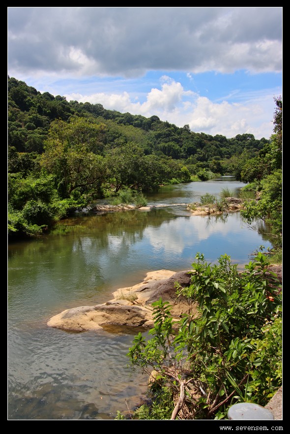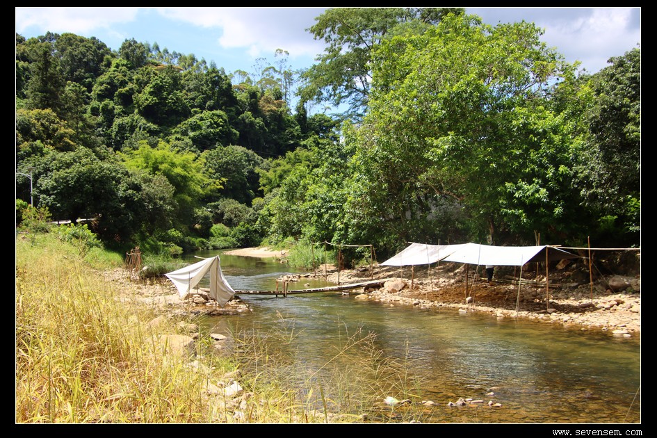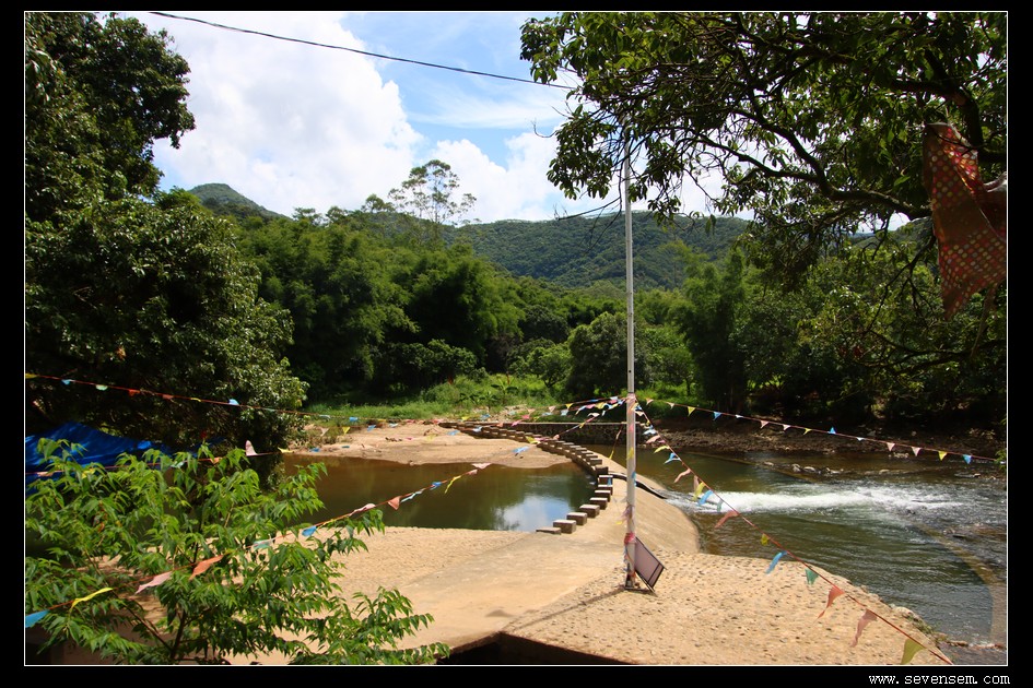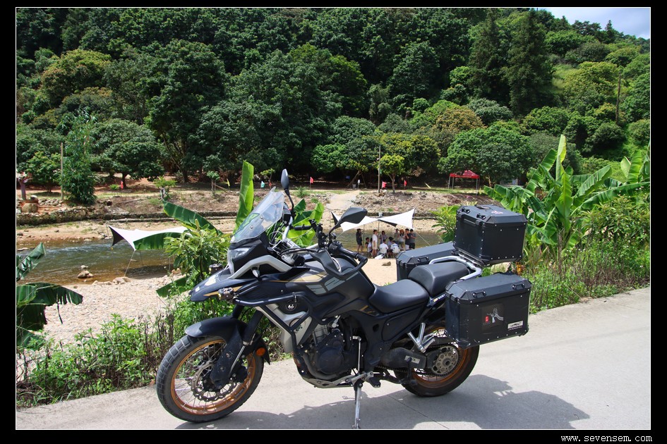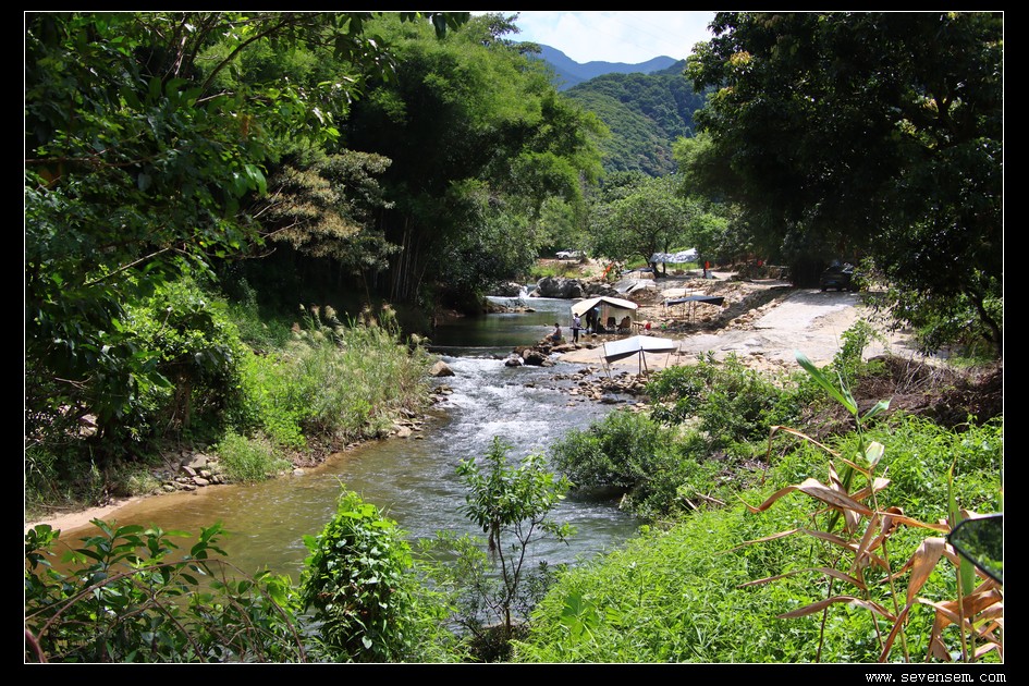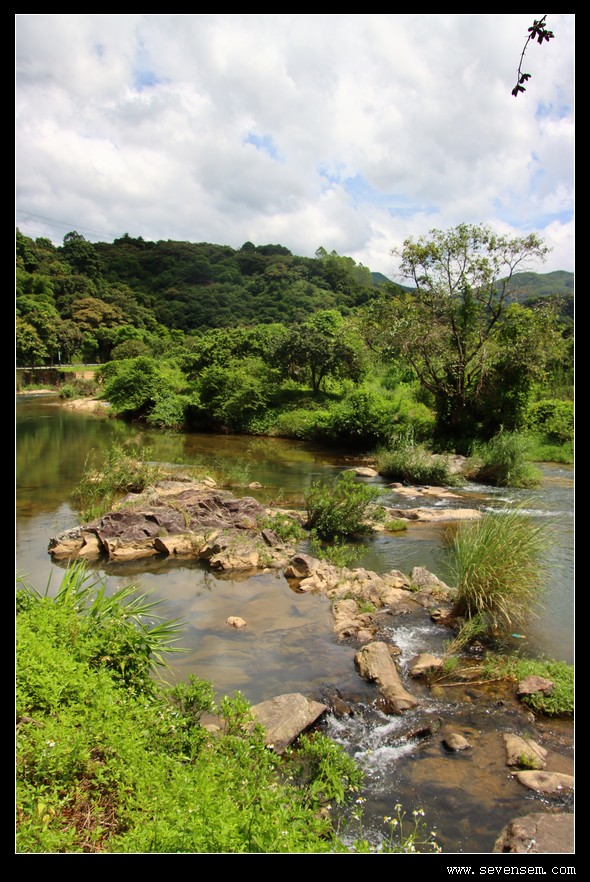 从水美村出发,沿着河边往上游走,大概10公里作用终于来到道路的尽头,摩托车都开不过去了。前面三次来彩虹到去到上山就结束了,这次连山上也修好了沥青路,彩虹道铺到尽头,终于见到大石头围着的水潭。