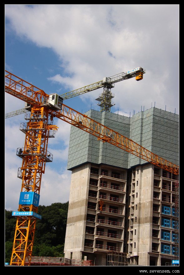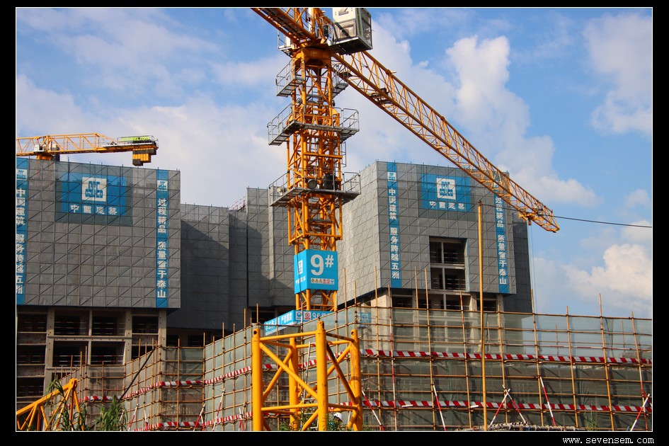 工地上空,几台吊机正舒展着钢铁“臂膀”,像不知疲倦的“大力士”日夜奔忙。