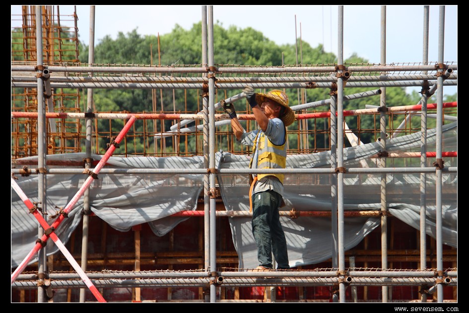 有人弯腰校准钢筋位置,指尖的力量稳稳托住房屋的“骨架”;有人站在脚手架上传递建材,沙哑的吆喝声裹着干劲儿,在工地上空来回穿梭。