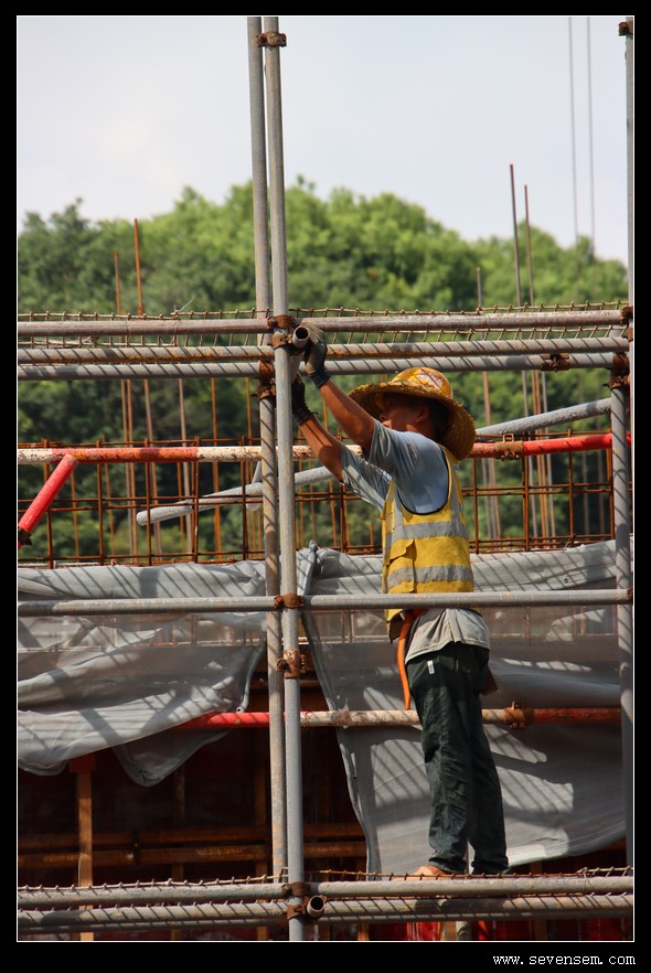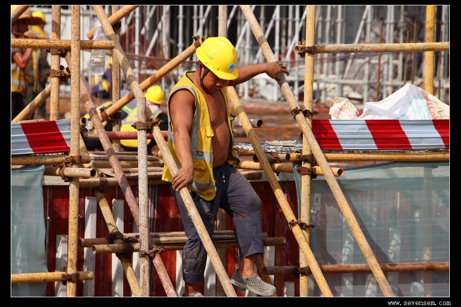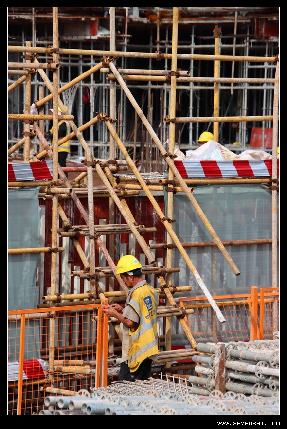 放眼望去,密密麻麻的施工人员像一群专注的“城市建造师”,橙色安全帽在晨光里连成一片流动的风景线。
