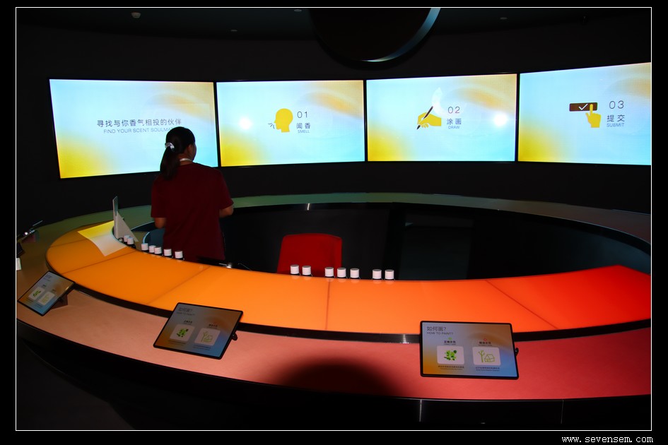 遍布展厅的闻香装置,拿通行证轻轻一拍,就能闻到不同文明的标志性香气,古埃及的乳香、宋代的沉香、欧洲的古龙水,鼻尖掠过的全是时光的味道。