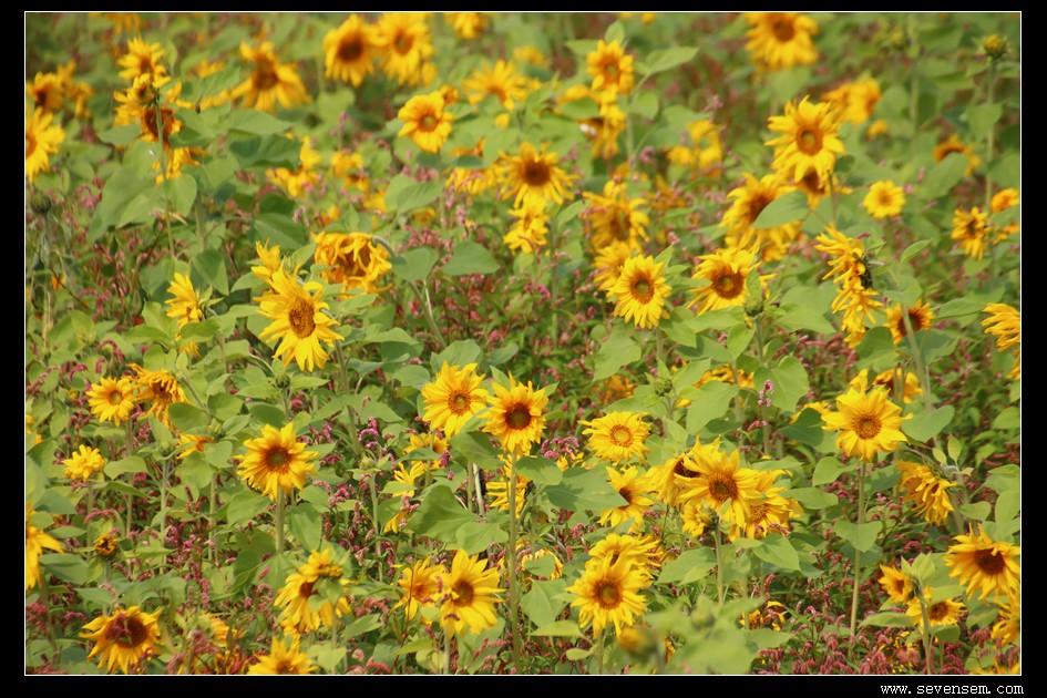 层层叠叠的花浪随风起伏,脚下是规整的田园阡陌,远处是轻黛远山。